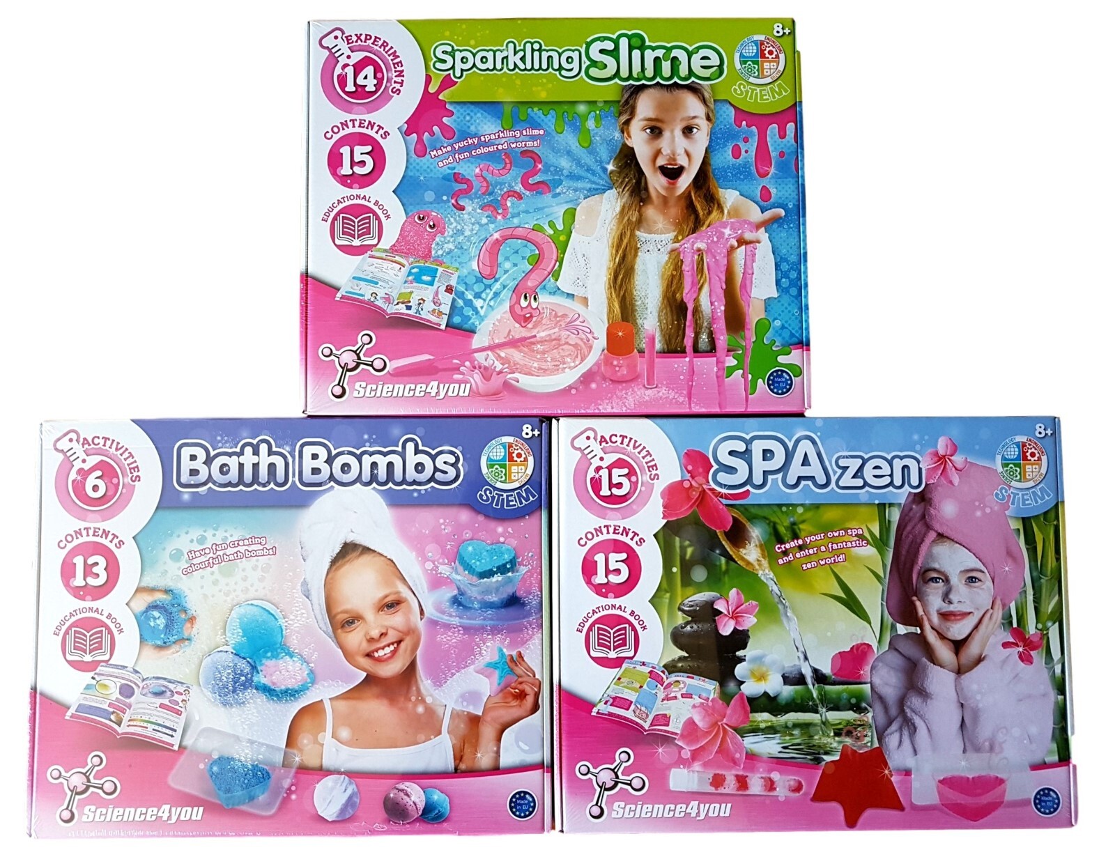 Science4You - Pack of 3 : Sparkling Slime, Bath Bombs, SpaZen