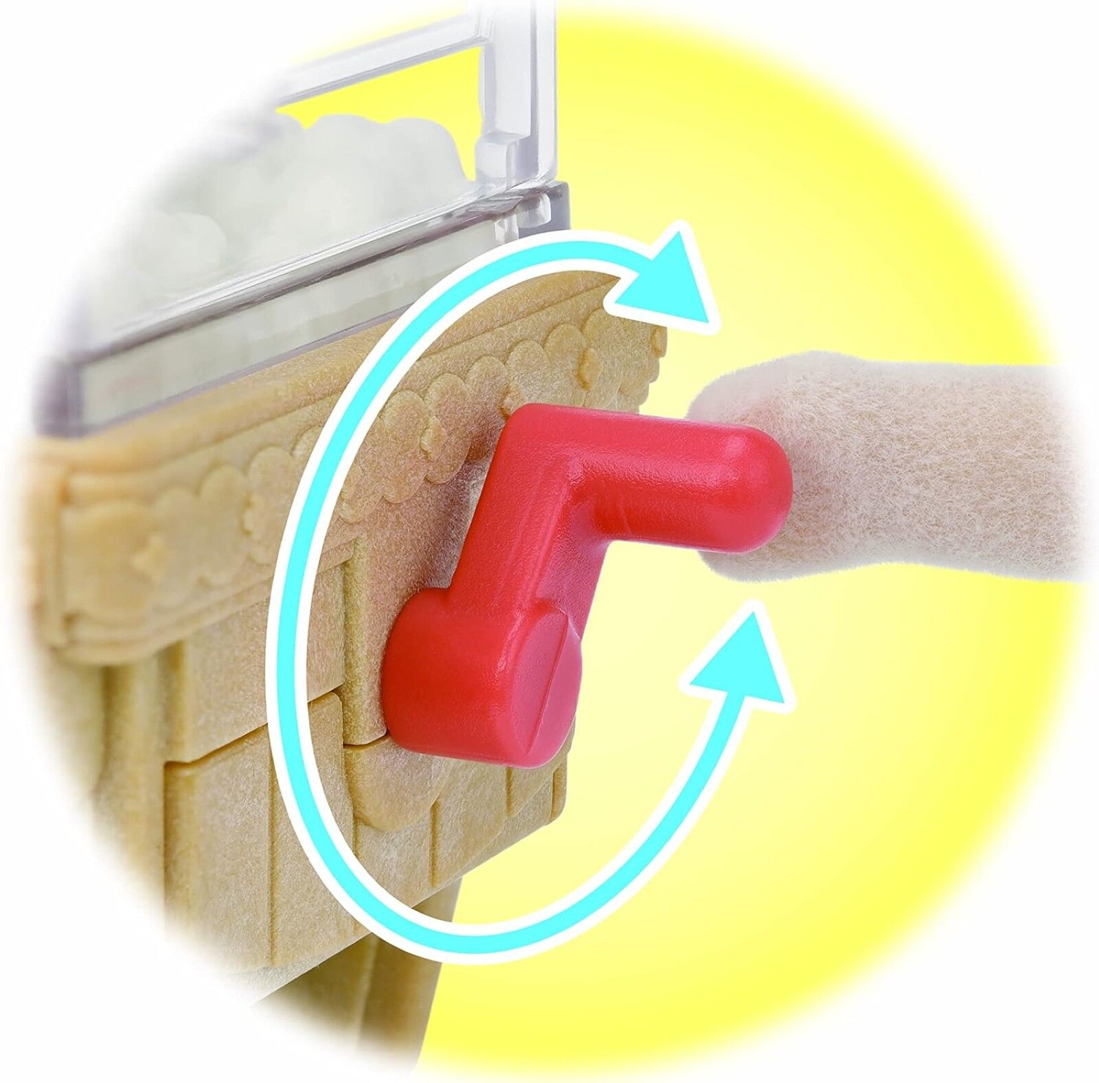 Mother rabbit takes babies to ride around a park in their new push car and tricycle! Includes mother rabbit, baby rabbit and squirrel, tricycle with basket & rotating wheels, car with rotating steering wheel & tires, 2 attachable push handles, watering can, and shovel.