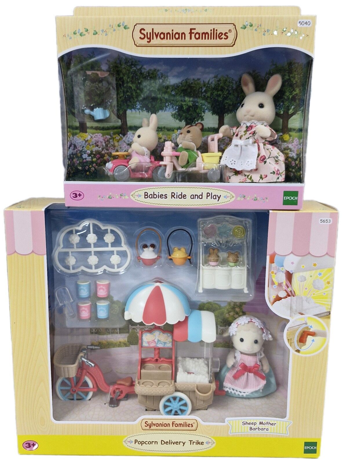 The Popcorn Delivery Trike set Includes Barbara the Sheep Mother in an exclusive outfit, plus a popcorn trike and all the accessories needed to enjoy running a popcorn stall.