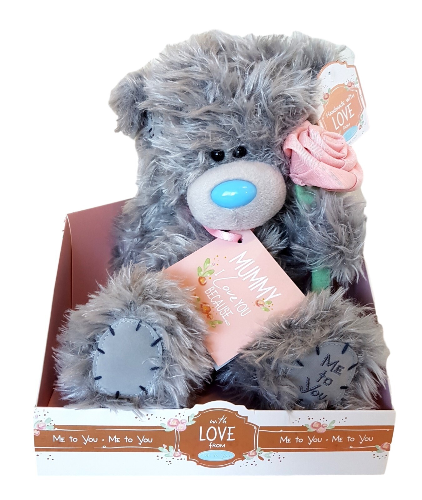 'Me to You' bears, also known as the Tatty Teddy is the famous grey bear with the blue nose and patches. There's one for every occasion.