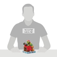 Inspired by his scheme to steal Christmas, The Grinch sews his Santa suit as Max watches curiously by his side. Complete with Jim Shore's floral patterns on the sewing machine and signature detailing, this piece captures crafty holiday mischief.