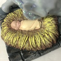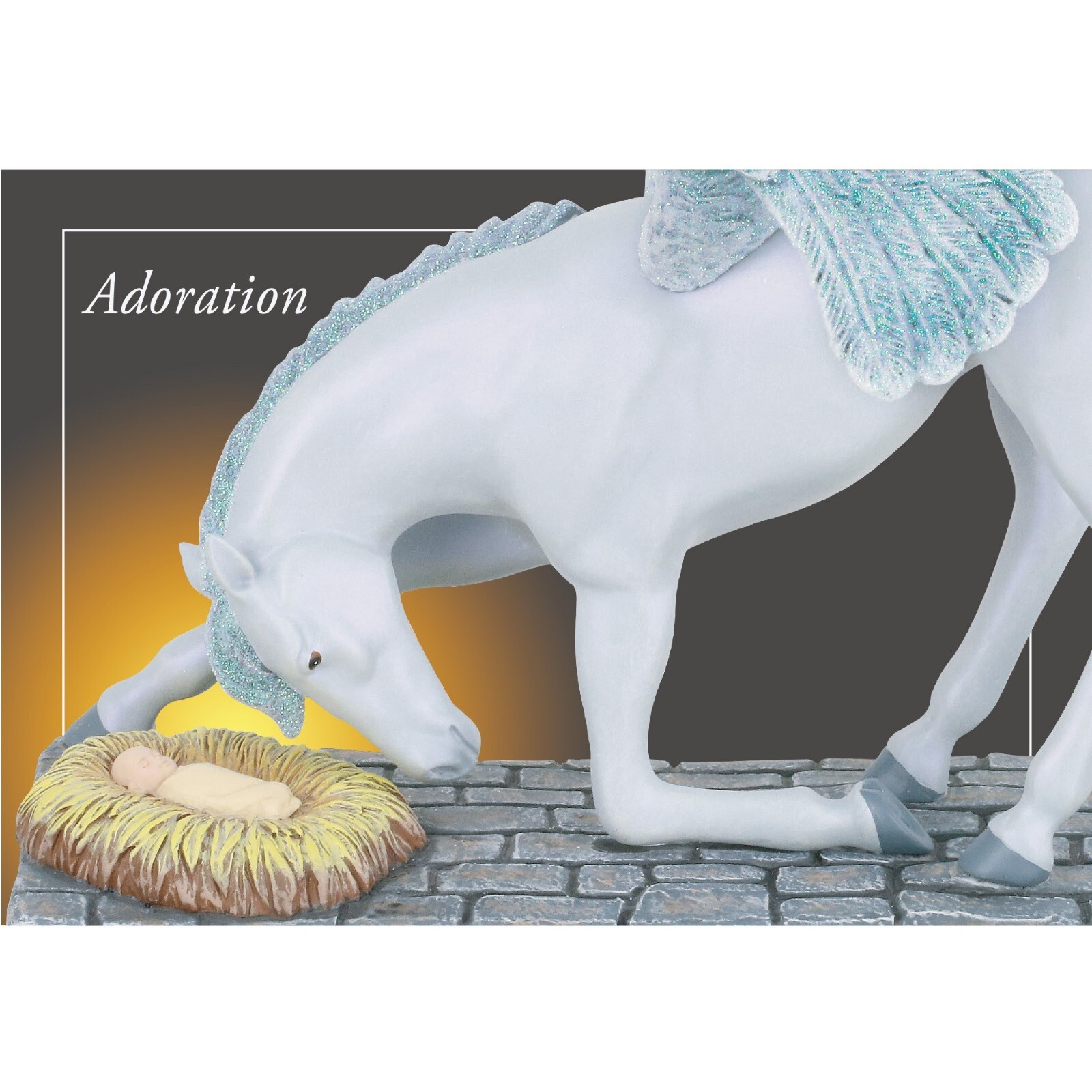 A mighty angel, in the form of a horse, bows down to the Divine Infant in an act of deep love and respect. Such a special child, radiating with hope for all mankind, deserving of the adoration caught in this silent and awe-inspiring moment.