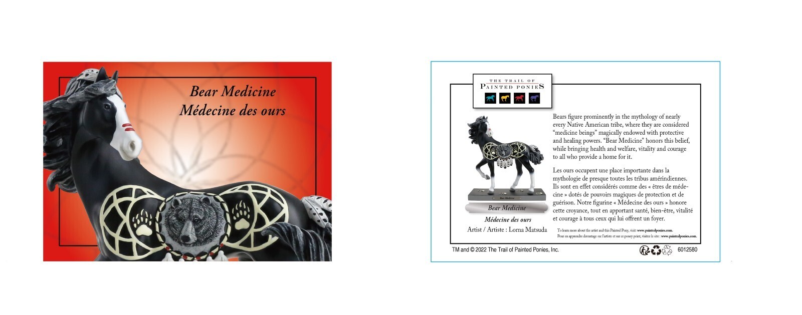 Bears figure prominently Native American mythology, considered to be “medicine beings” magically endowed with protective and healing powers. “Bear Medicine honors this belief, while bringing health and welfare, vitality and courage to all.