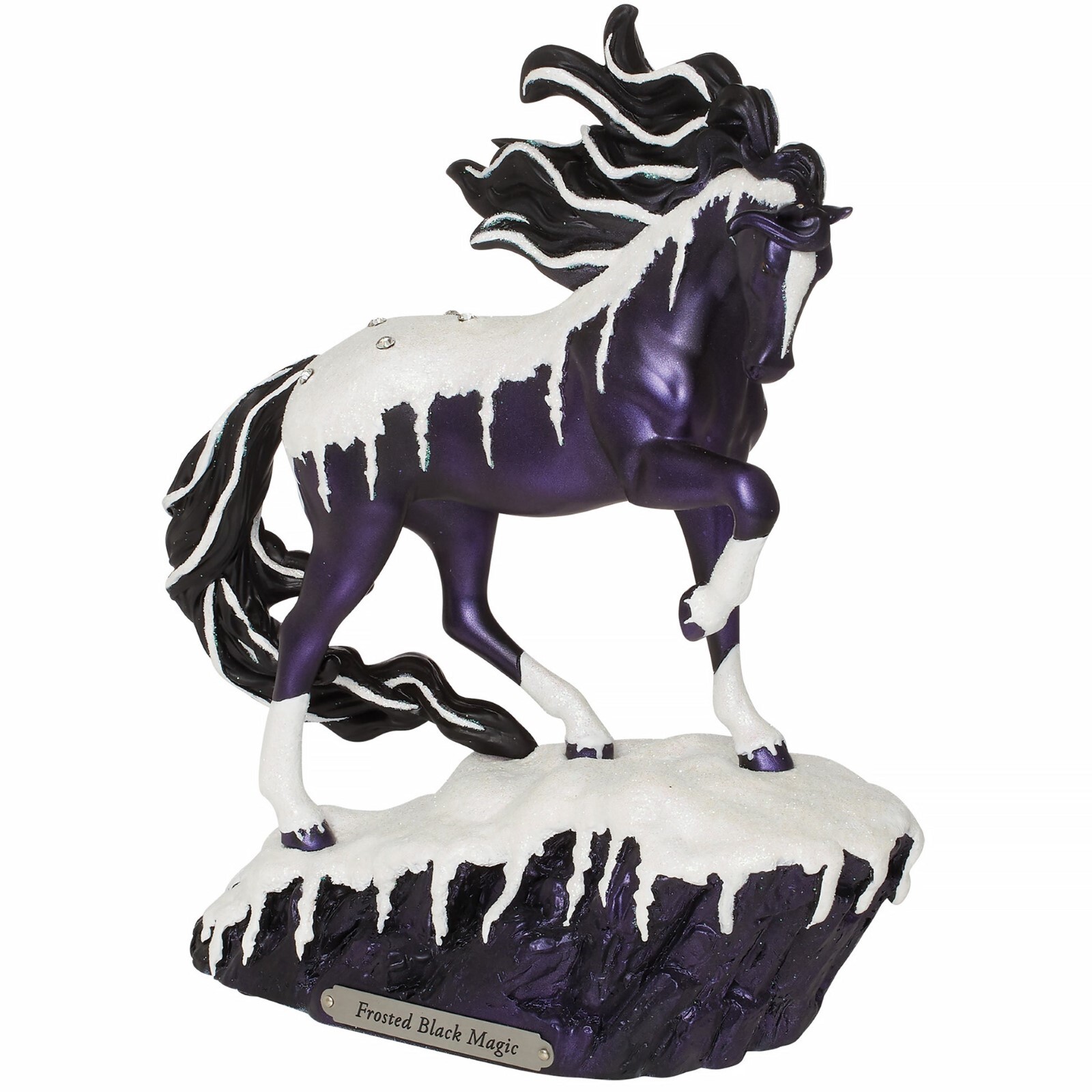 Winter 2023 marks the 20th anniversary of The Trail of Painted Ponies. With that in mind, this artist created a sparkling tribute to a two-decade exploration of the creative possibilities of the horse as a canvas for creative expression with a gleaming, jet-black horse in a triumphant pose with a frosted coating of snow that shines like rare jewels, as precious as the joy the Painted Ponies have brought to collectors over the years. "Frosted Black Magic" was the winner of The Trail's art competition honouring this milestone.