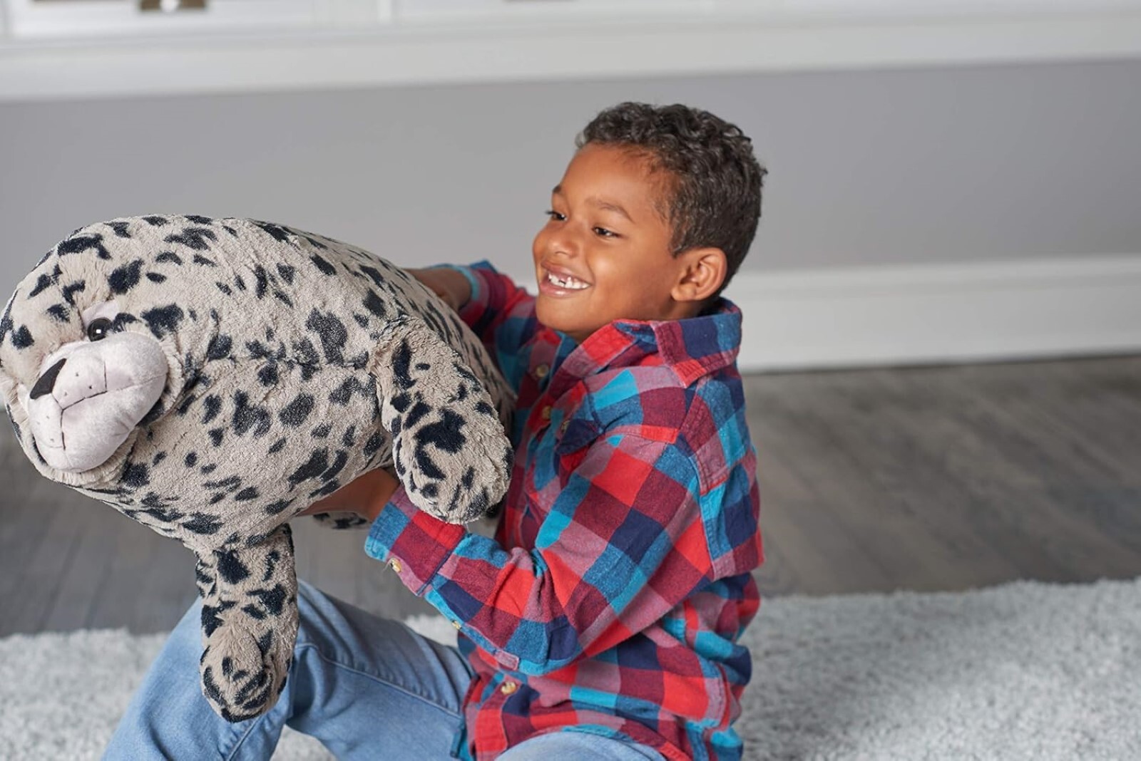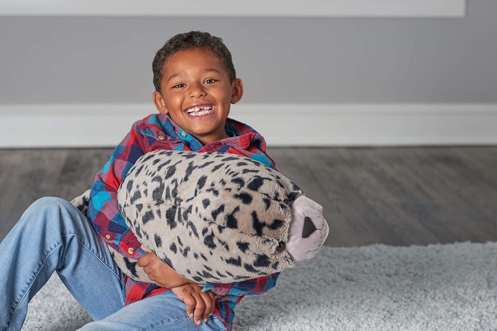 Harbor Seals can sleep underwater. Their nervous system has an automatic shut-off mechanism that prevents them from breathing at inappropriate times. They will surface subconsciously to breathe. In the wild, these guys thrive in the Atlantic and Pacific. Our jumbo stuffed seal, though, can adapt to any home environment!