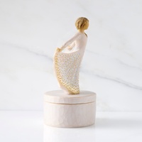 A gift to encourage and acknowledge individual strength; to celebrate accomplishments such as graduation or career promotion. Hand-painted carved sculpture is affixed to lid of Keepsake Box; lid is not attached. Box holds jewelry, accessories. Inside bottom of box reveals words of support.