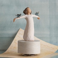 The full - scale, beloved figure of Happiness is perfect for the Musical format. When turning, the motion carved into her hair and dress, and the wings of the birds, all communicate movement, freedom, joy.. .Happiness is a happy piece! The hand-painted base elevates the figure while it turns beautifully to the classic Tchaikovsky's "Waltz of the Flowers".