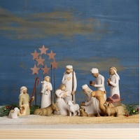 Willow Tree Nativity Christmas Figures Holy Family Wise Men Animals Metal Star 14-Piece Set
