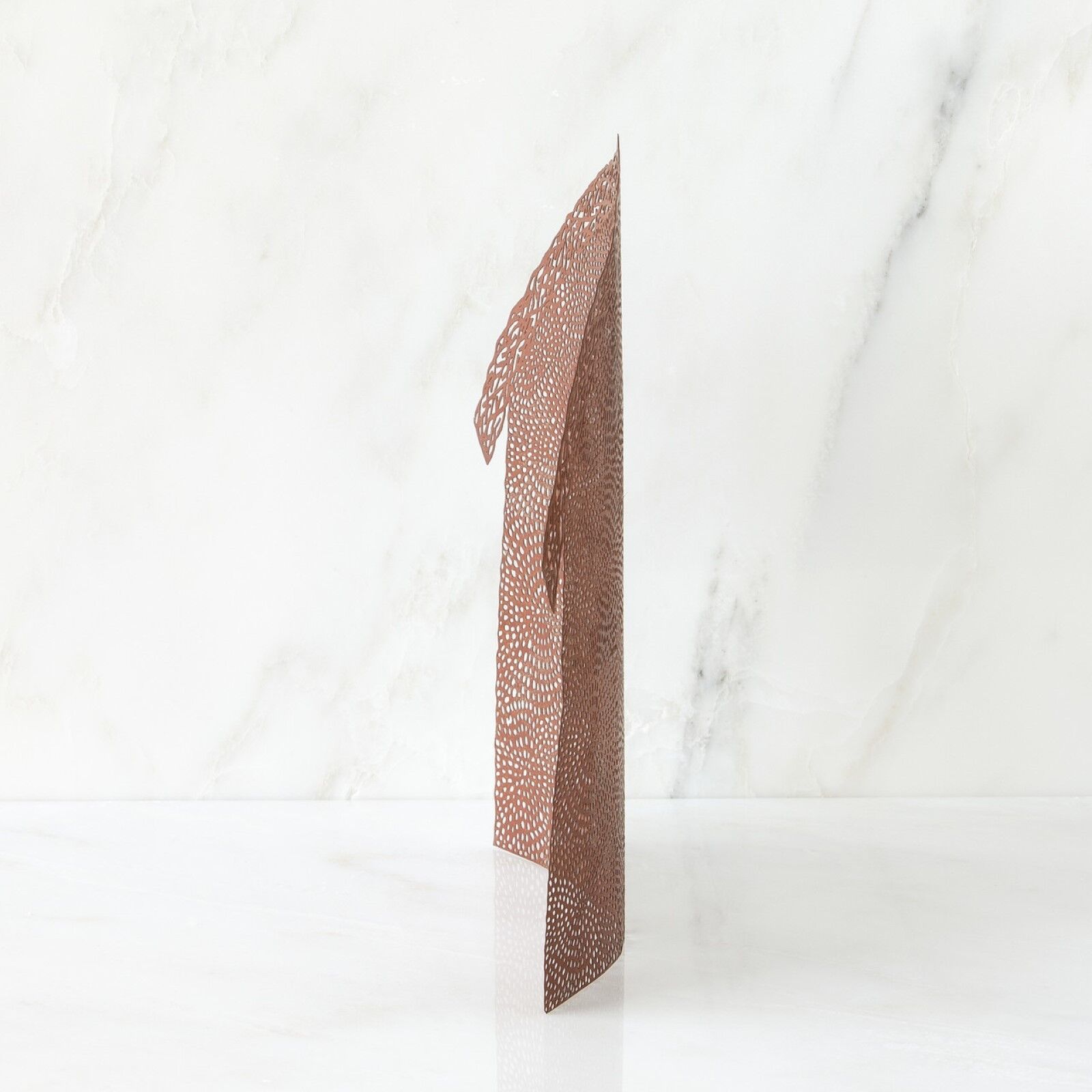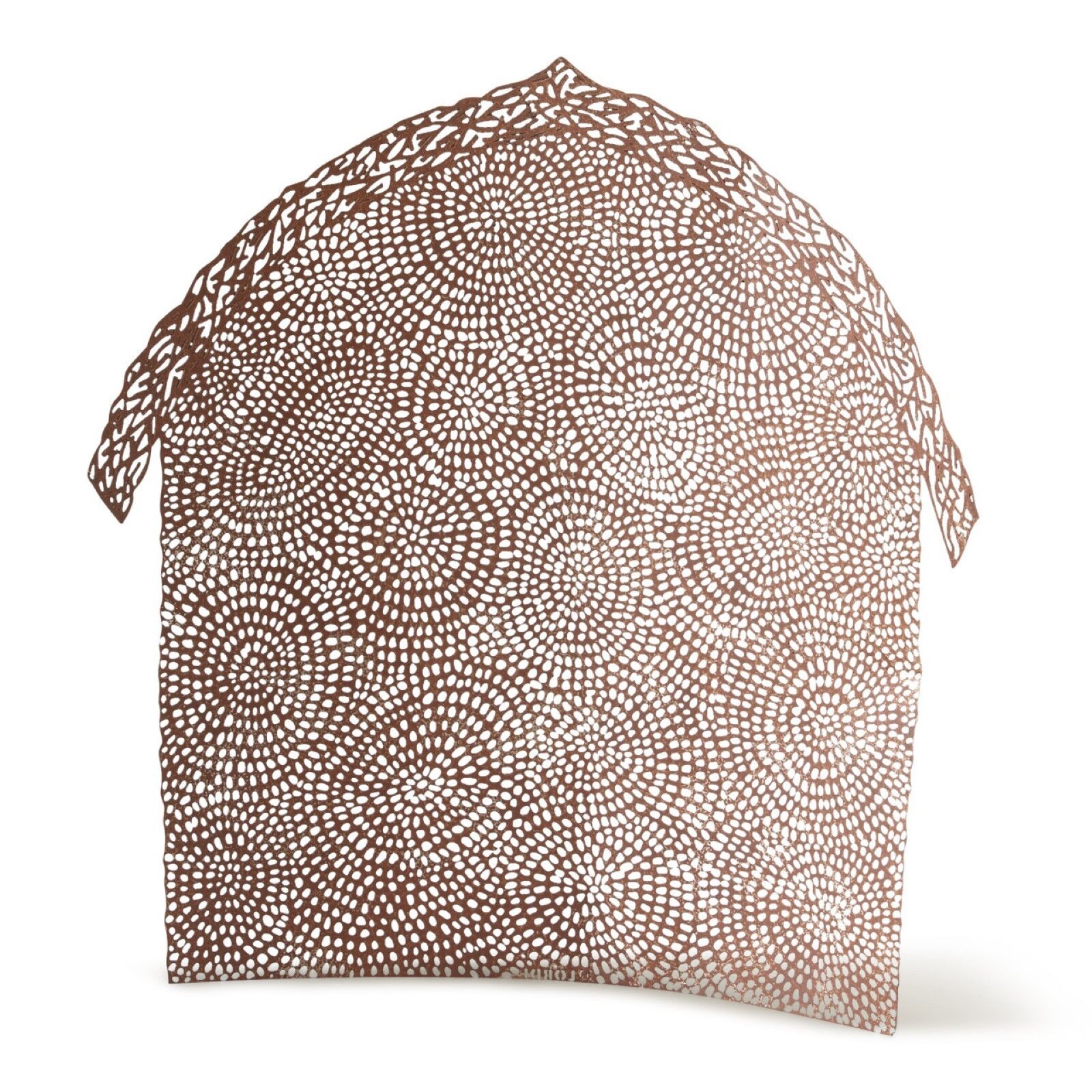 This pierced-metal backdrop was created to complement The Holy Family, though it can be used as a beautiful backdrop for other angels or figures as well. It’s basically a single sheet of pierced metal, curved to allow it to stand and represent a shelter for The Holy Family and animals